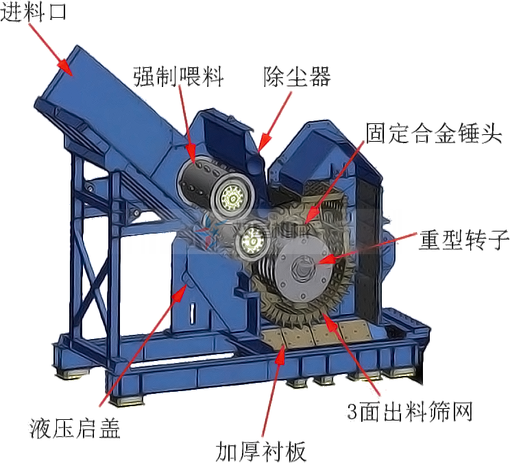 金屬破碎機加工斷橋鋁的是利用經高速旋轉的錘頭強烈沖擊,形成錘頭與物料、物料與機殼襯板、物料與物料之間的強烈碰撞形成初次破碎。初次破碎的物料下落至破碎機體底部篩體部,小于籬縫寬度和回轉錘頭與篩條部間隙的物料從籬縫間落下,而大于以上兩個尺寸的物料經回轉錘頭與篩條的擠壓完成二次破碎。錘頭是金屬破碎機的主要工作部件,此金屬破總共裝了3排錘頭,每排10個共30個錘頭,錘頭間的間隙a=60mm,錘頭與殼板間的間隙為25mm,錘頭的回轉直徑1250mm,錘頭單重27kg,有效磨損量為錘頭重量的1/2將鋁塑門窗進行粉碎,將里面的塑料和鋁進行分離,再通過使用渦電流分選機對物料進行分析處理。生產過程中采用物理分解分離,無化學試劑無焚燒,不會造成二次污染。設備采用自動化操作系統,節約人工成本。